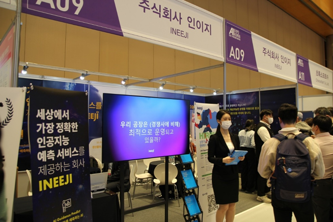 (인이지의 AI 솔루션은 제조 설비의 주요 반응을 파악하고 스스로 운전, 조절한다. 사진은 인이지 부스 전경.)